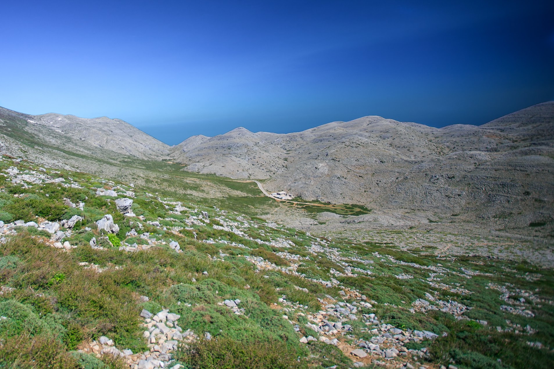 Płaskowyż Lakkos Migerou to wysokogórska blacha utworzona w masywie Ψηλορείτης (Psiloritis) na Krecie — położona około 1 600–1 700 m n.p.m., otoczona spektakularnymi dolinami i formacjami krasowymi. To miejsce, w którym natura pokazuje swój surowy, alpejski charakter — śniegi utrzymują się długo w sezonie, a droga prowadząca tutaj stanowi wstęp do ambitniejszych tras w górskich masywach Krety.