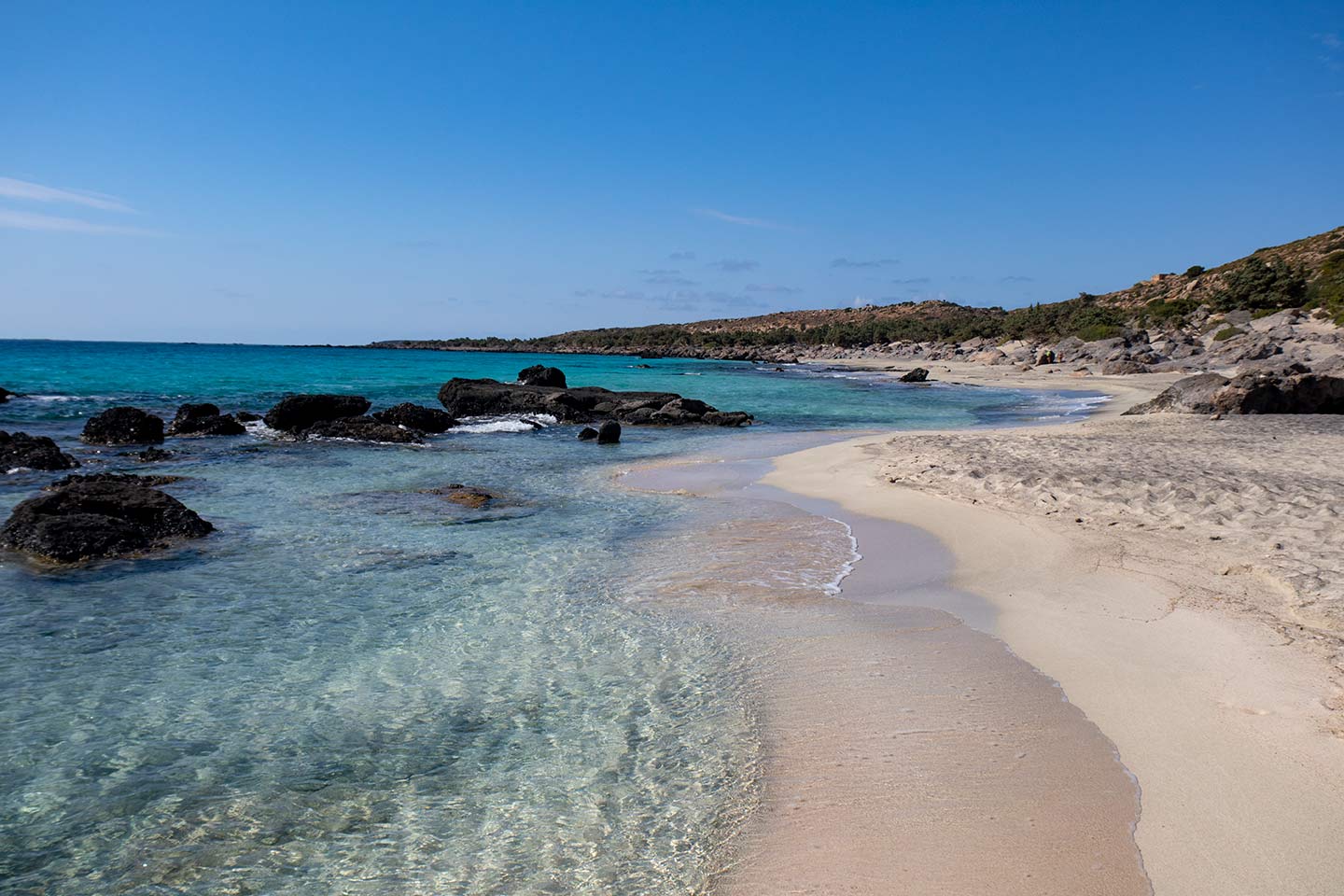 Kedrodasos, czyli „Jałowcowy Las”, to dzika, niemal nietknięta plaża położona kilka kilometrów na wschód od Elafonisi. Złoty piasek, turkusowe morze i naturalne cienie rzadkich jałowców tworzą tu krajobraz przypominający pustynię połączoną z rajskim ogrodem. Miejsce nie ma infrastruktury turystycznej, dlatego zachowuje autentyczność i spokój, które rzadko spotyka się na południowej Krecie.