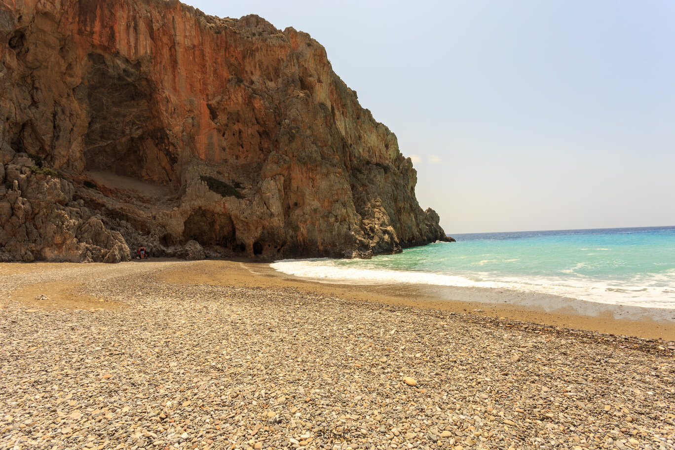 Trasa do plaży prowadzi przez kamienny, surowy krajobraz pełen jaskiń, dawnych cel mnichów i kozic kri-kri wspinających się po skałach. Po kilkudziesięciu minutach marszu wąwóz otwiera się na morze, a oczom wędrowca ukazuje się zatoka otoczona pionowymi klifami. Piasek miesza się tu z drobnymi kamieniami, a woda ma niezwykły, głęboki odcień błękitu.